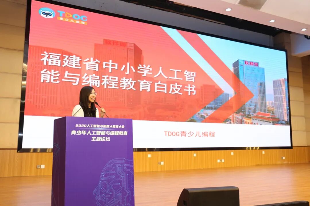 论坛最后,TDOG青少儿编程CEO陈维维发布了基于6万人数据的福建省中小学人工智能与编程学习报告。在今年疫情期间,TDOG青少儿编程携手中国教育发展战略学会人工智能与机器人教育专委会组织了全国最大规模的在线编程学习活动,福建省的学生是最主要的参与方。基于参与活动的6万名学员的学习情况,TDOG青少儿编程对福建省中小学人工智能与编程学习情况进行了全面深入解析,对学员年龄结构、学习习惯、学习兴趣、学习动力、家长观点等进行了总结分析。